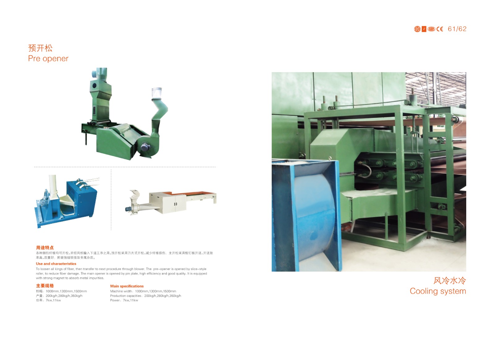 (2)開(kāi)松機(jī)裝有強(qiáng)力磁鐵吸取金屬雜質(zhì);